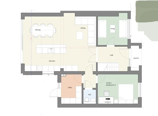 Opportunity to transform the existing house with a two storey front extension, to sit better within its context of the National Park.